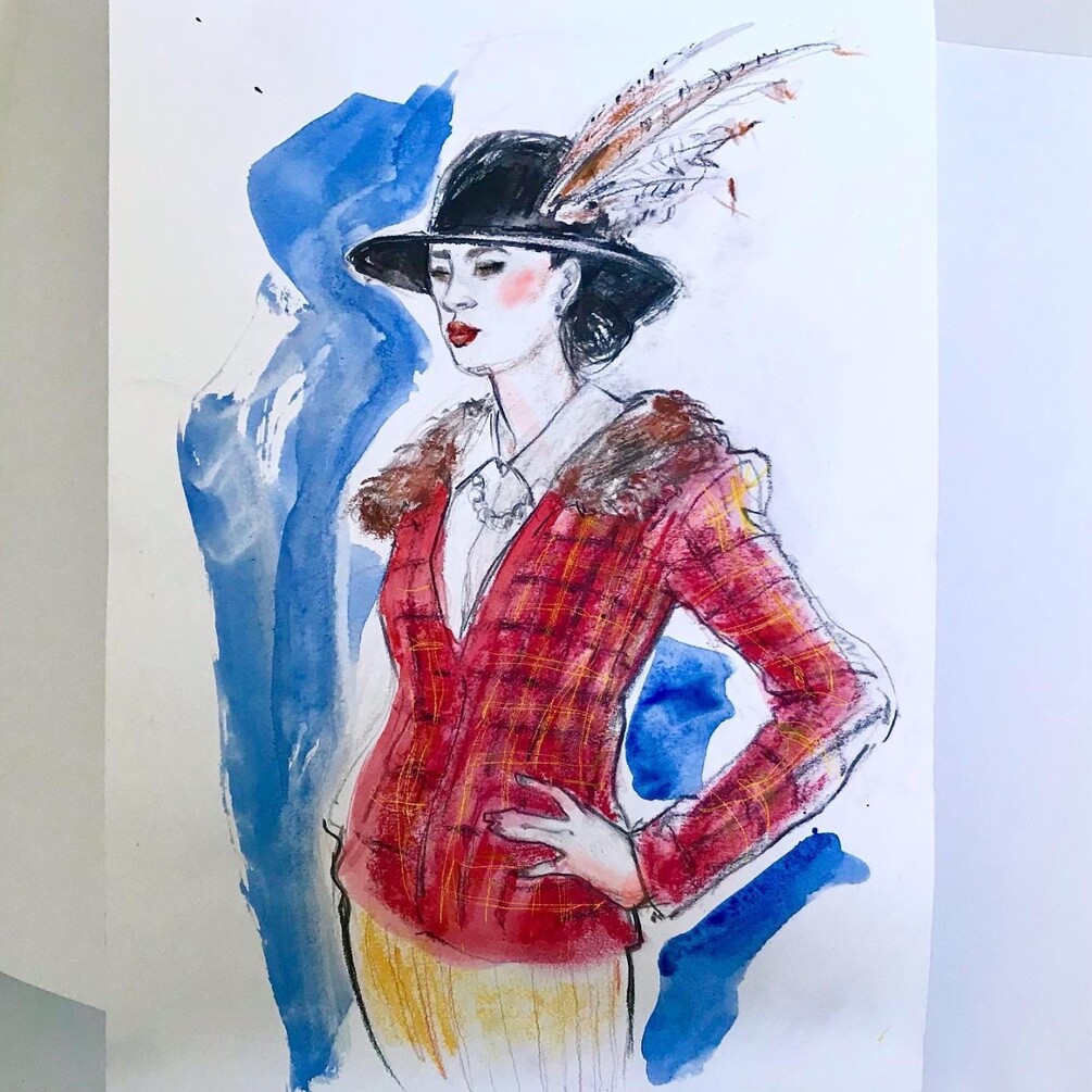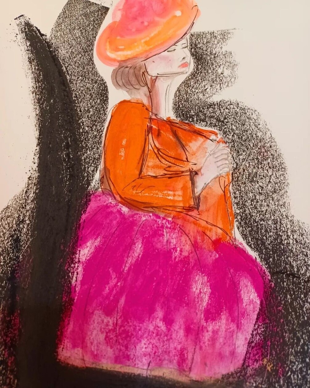 A Fashion Illustration collaboration between SAHAR FREEMANTLE and DROPDEAD GORGEOUS DRAWING in celebration of the colour-sense and style of the late QUEEN ELIZABETH.