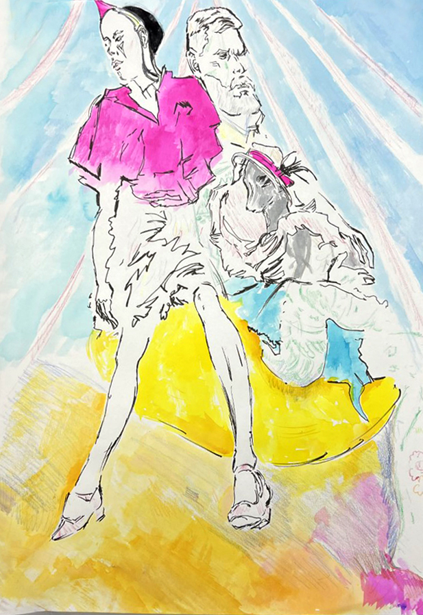This recent MILLINER'S DRAWING ROOM session features SAHAR and GUNTHER (and canine co-model Max) in a circus themed setting that has inspired some stunning fashion illustrations!